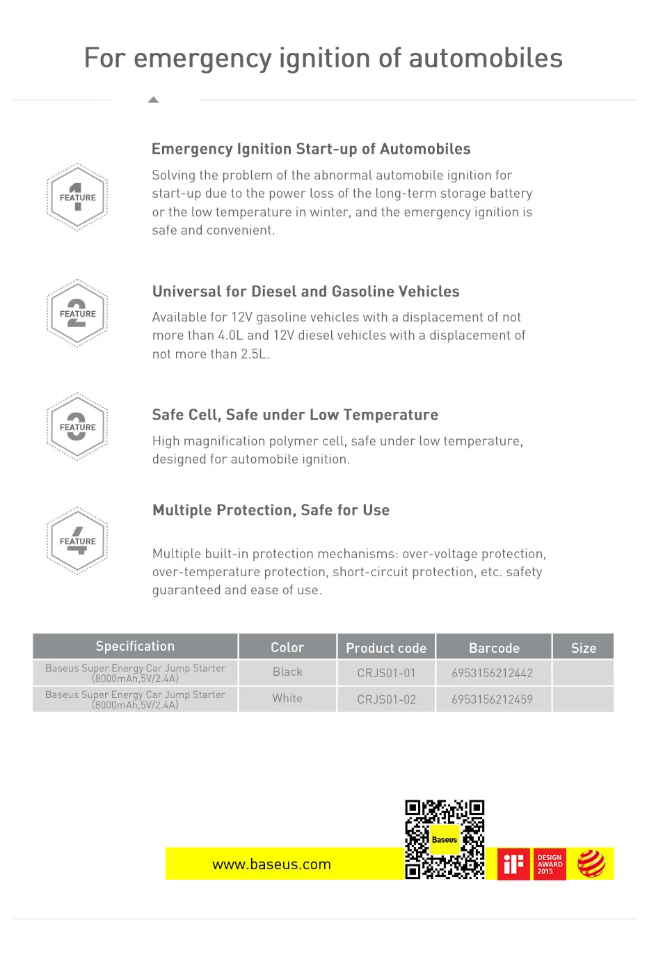 Модернизированные 4 серии аккумуляторов, более чем в 2 раза прочнее, чем традиционные 3 серии запуска производительности. 8000 мАч большая мощность используется для многократной зарядки