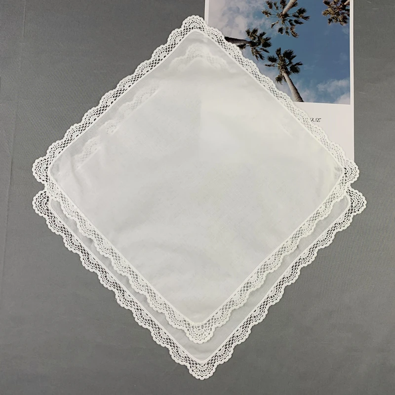 Белый Хлопковый женский свадебный платок с винтажными кружевными краями для подарка невесты.