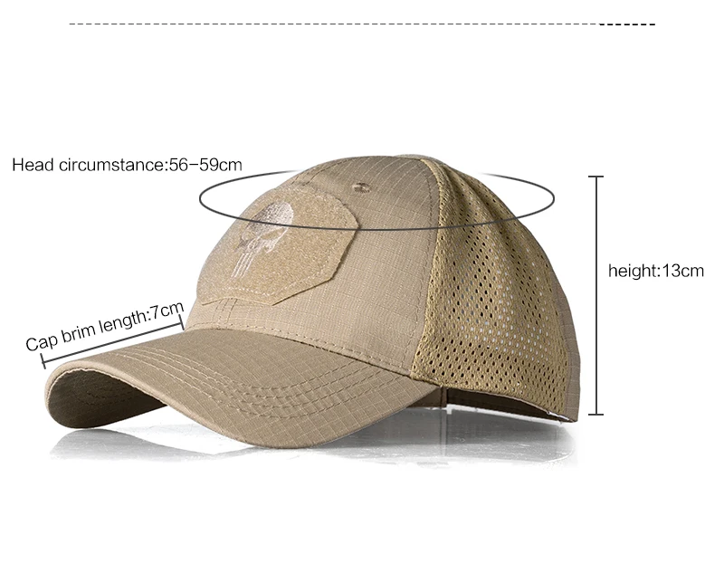 Дизайн с боковой сеткой, свободно дышит. Верхняя часть шапки имеет круговой дизайн, с слегка поднятыми отверстиями, дышащая и тактическая.