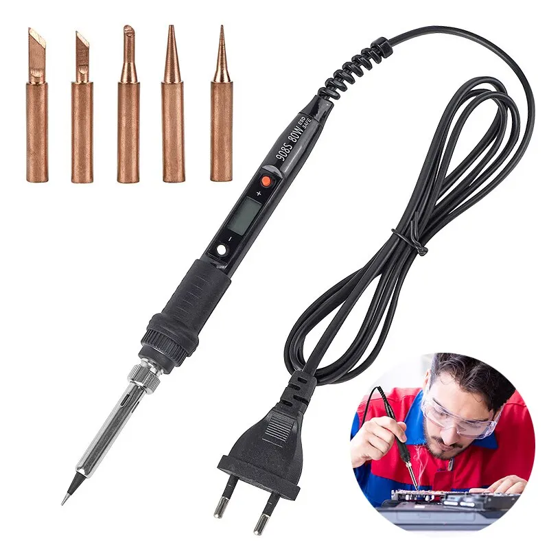 6-в-1 ЖК-дисплей цифровой Дисплей Электрический паяльник Комплект 80 Вт Регулируемая Температура с 5 шт паяльной сварочное оборудованиеUS $16,6