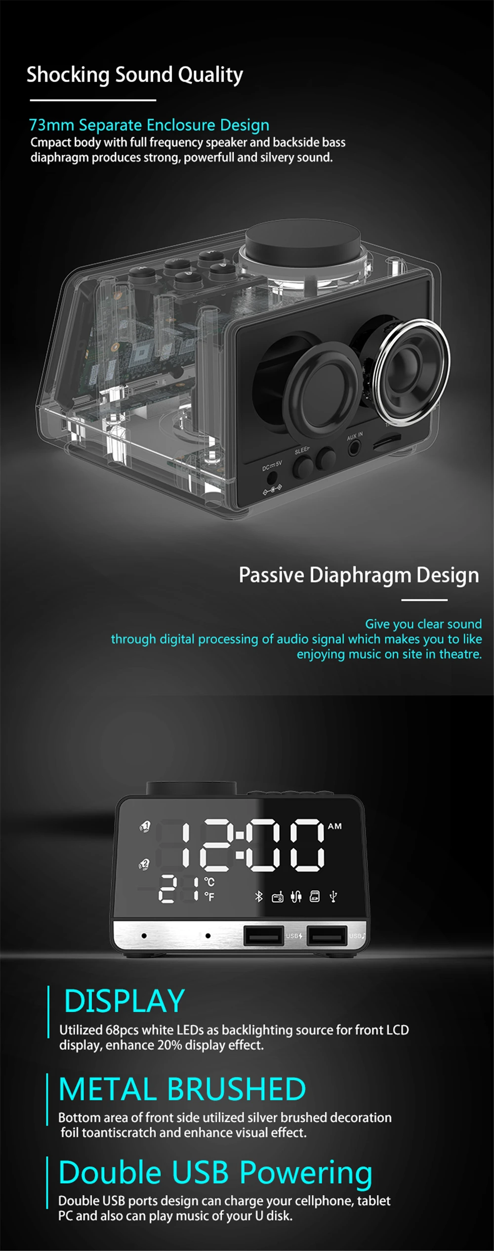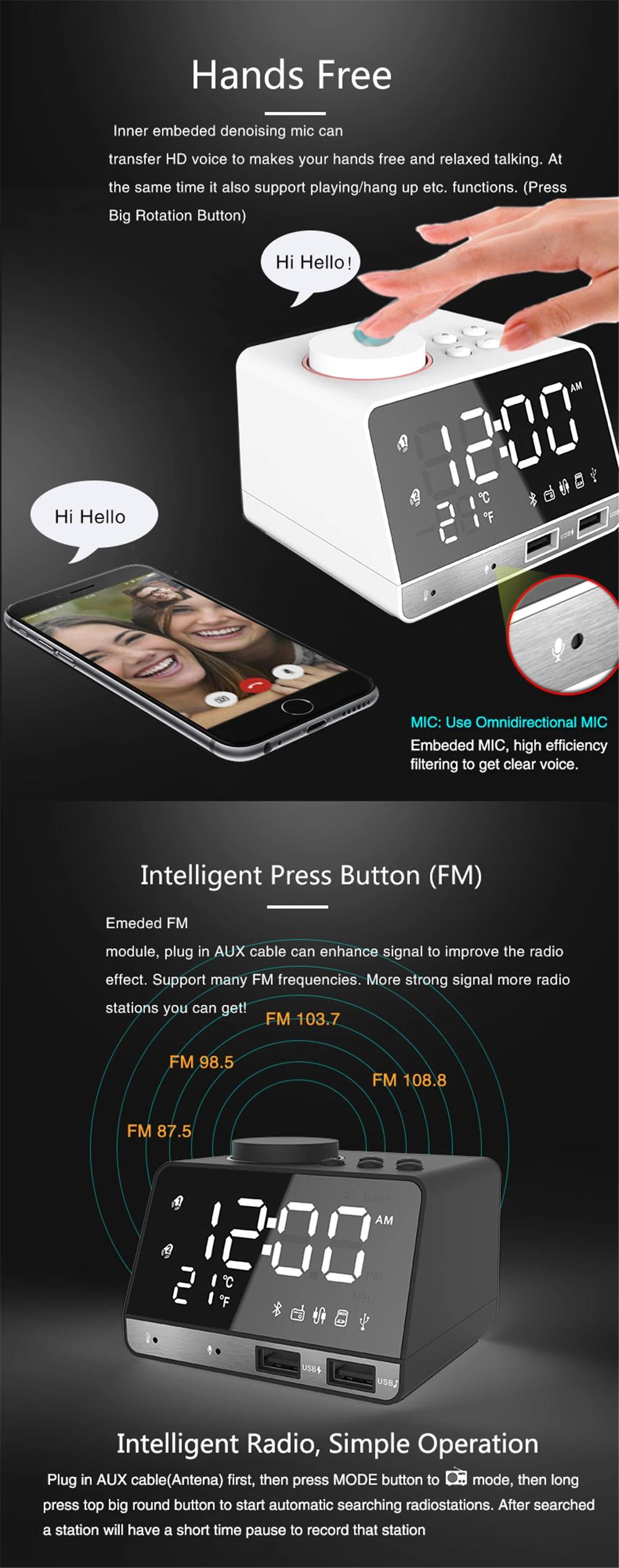 Это цифровое тюнинговое радио позволяет вам просыпаться от радио вещания и заснуть от вашей любимой радиостанции, удивительный опыт.