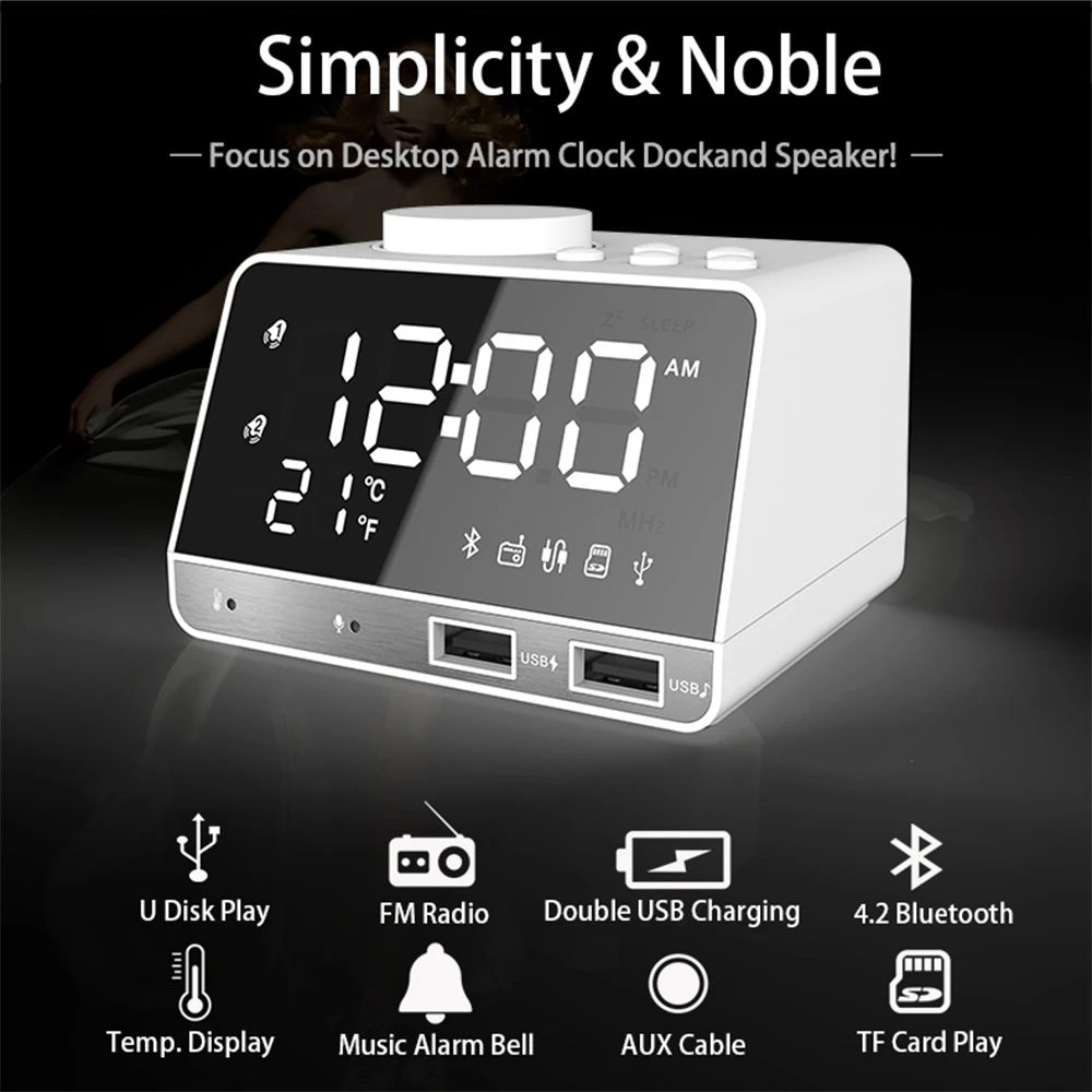 Управляемый новейшей технологией Bluetooth 4,2, наш громкоговоритель радио-будильника предоставляет Вам ультра Hi-Fi аудио даже в шумной среде.