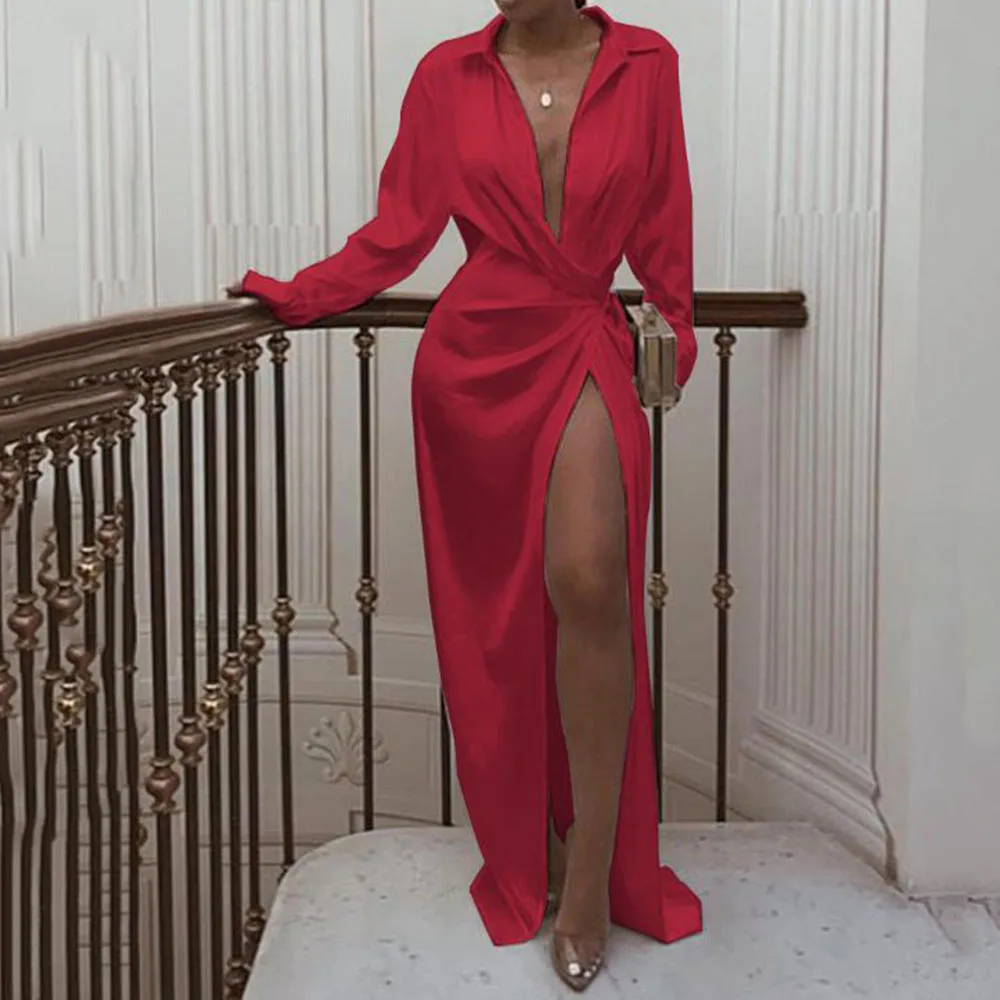 Роскошное Золотое блестящее платье с разрезом и v-образным вырезом, сексуальное вечернее платье, длинное женское платье с высокой талией, туника для ночного клуба, плиссированное Макси-платье с рукавами-фонариками