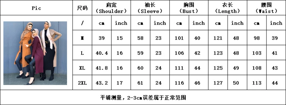 XL:Shoulder 41 cm,Bust 111 cm,Waist 108 cm ,Sleeve 60 cm,Length 125 cm
