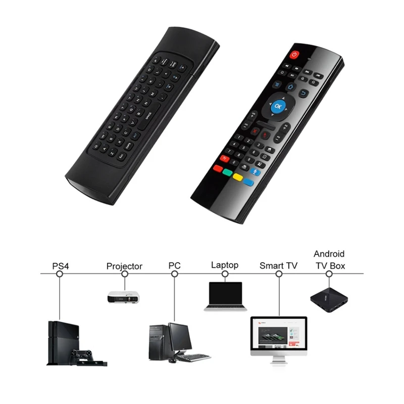 6 в 1 Функция: 1. Пульт дистанционного управления; 2.Air Mouse; 3. Беспроводная клавиатура; 4.IR Mode.5, голосовое управление; 6, более 10 м управление