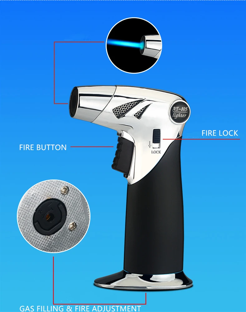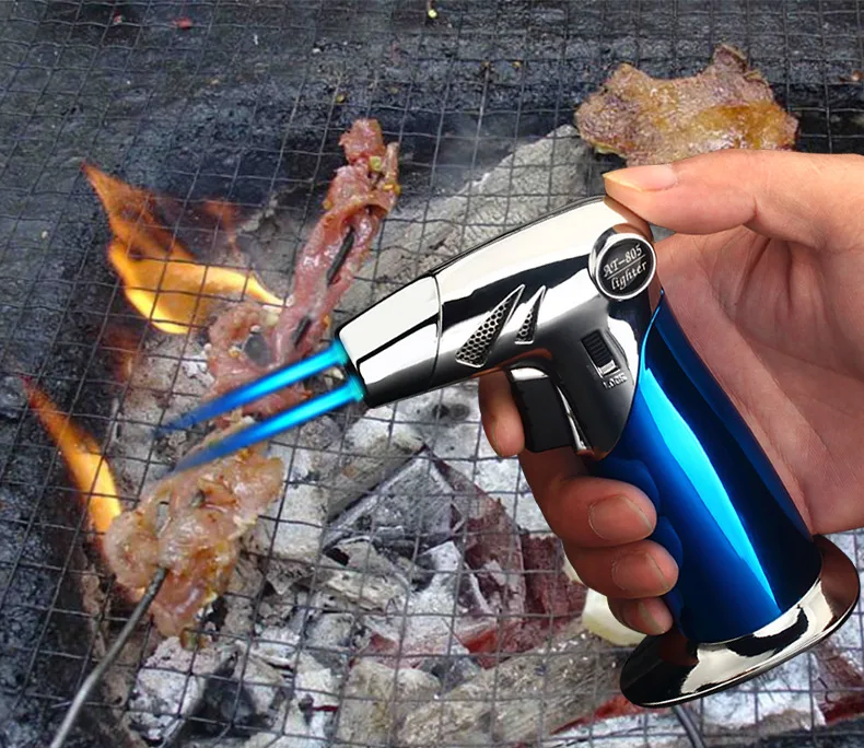 Зажигалка для сигар турбо компактная Бутановая 3 струйная Зажигалка Ветрозащитная металлическая зажигалка для кухни для наружного использования и барбекю