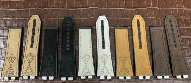 Nubuck cow leather Bamboo belt Fluorine rubber For Hublot strap Watchband 27x17mm 22mm for big bang watch band 411 insert piece