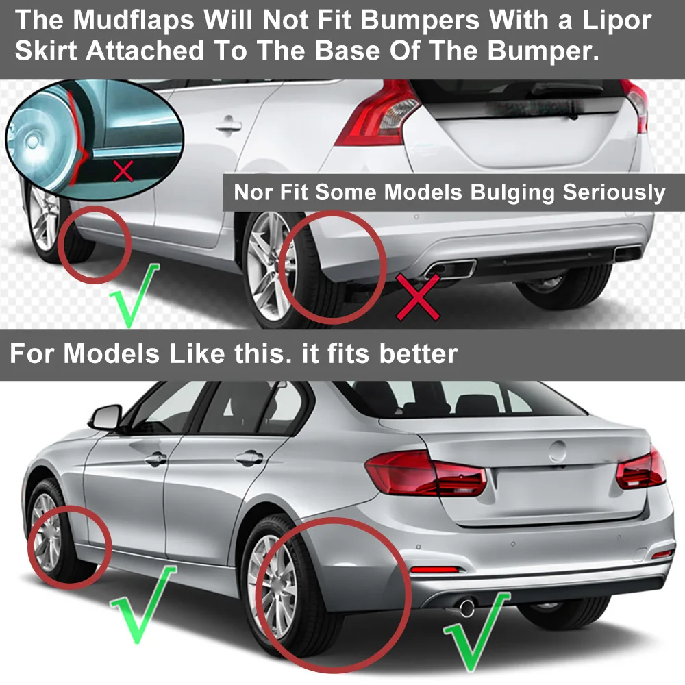 -Эти износостойкие грязевые предохранители легко сочетаются с автомобилями и минимизируют риск попадания грязи, дорожных обломков и каменных сколов с передних и задних шин. Обеспечьте дополнительную защиту, улучшая спортивный внешний вид вашего автомобиля