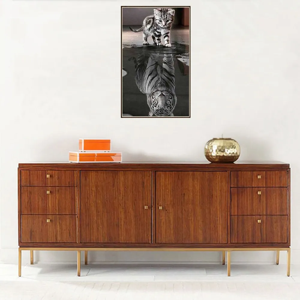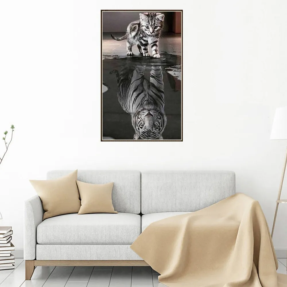 Новая Рукоделие 5D полная алмазная вышивка котенок отражение Тигр Сделай Сам алмазная вышивка крестиком Скрапбукинг алмазняя вышивка