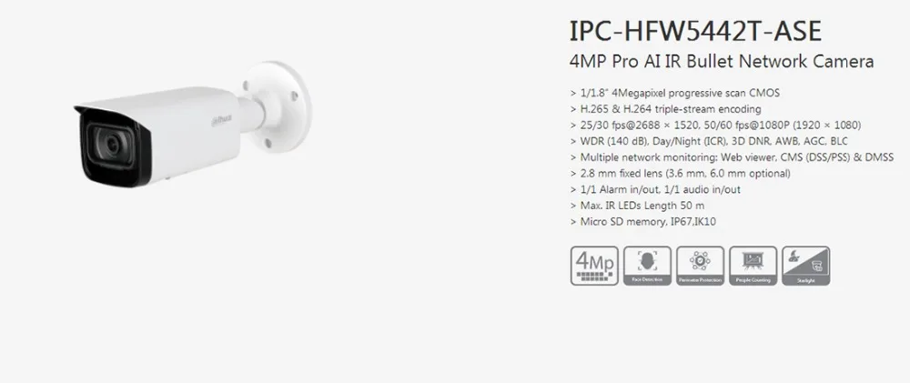 > WDR (140 дБ), день/ночь (ICR), 3D DNR, AWB, AGC, BLC