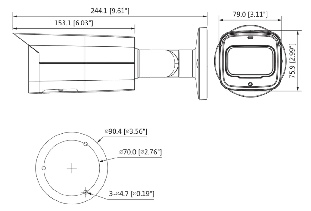 244,1 мм × 79,0 мм × 75,9 мм (9,61 "× 3,11" × 2,99 ")