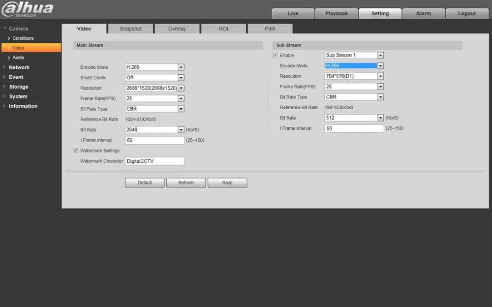 Основной поток: 2688 × 1520 (1 fps-25/30 кадров в секунду)