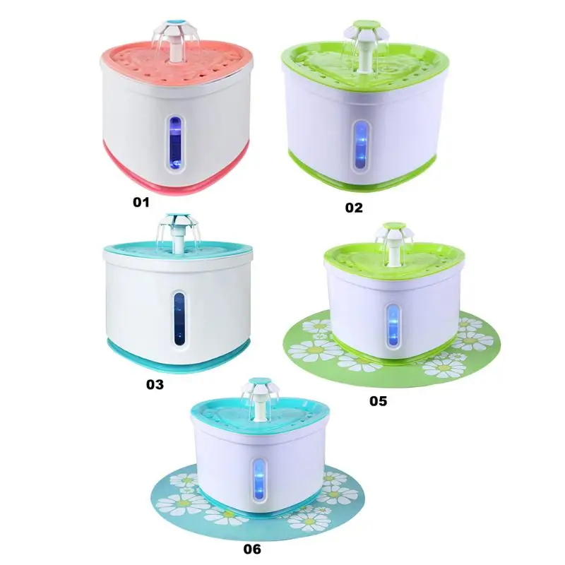 5. Уникальный дизайн водного потока и цветочный узор привлекают внимание домашних животных, так что домашние животные могут испытать забавную питьевую воду и емкость воды 2L значительно помогают домашним животным пить больше воды.