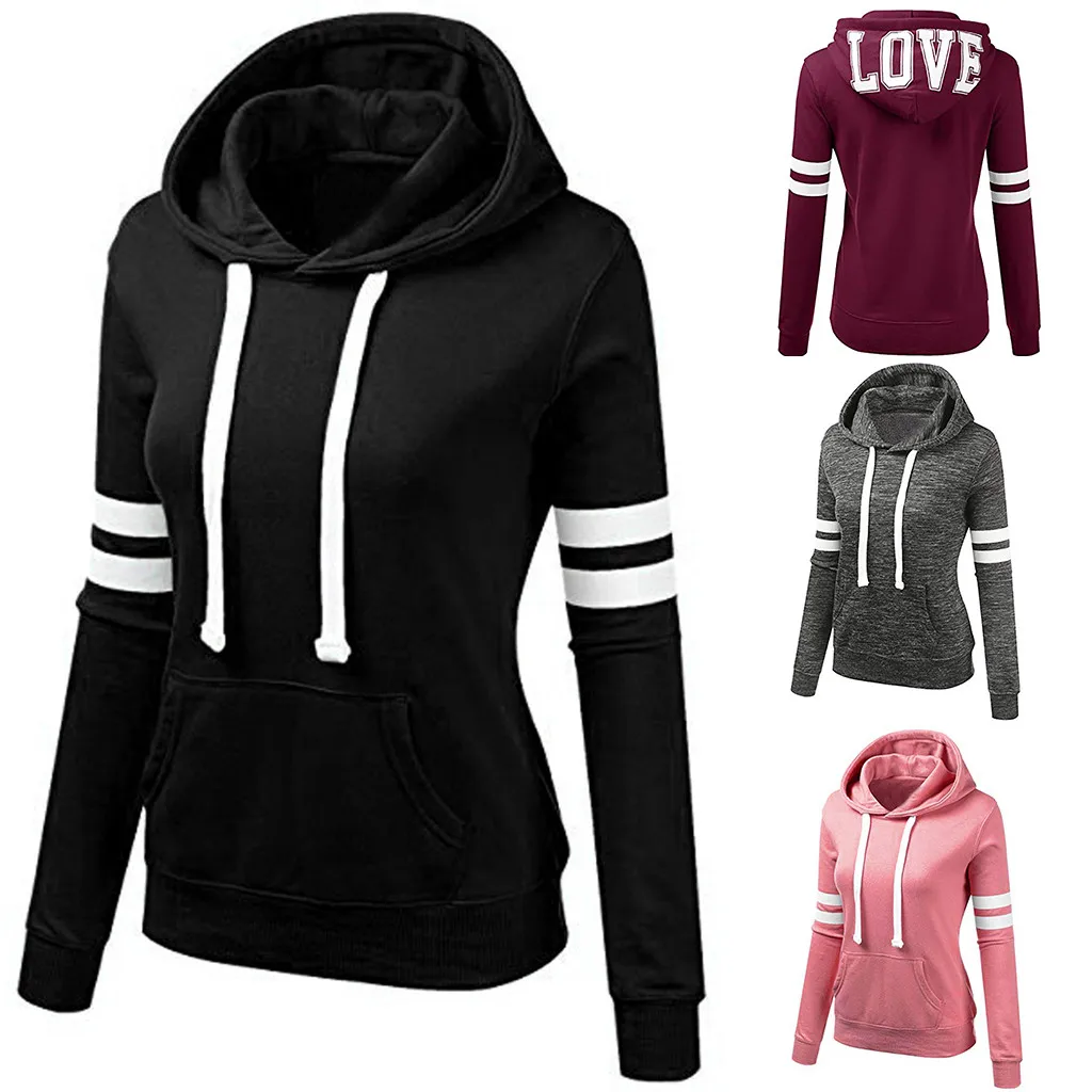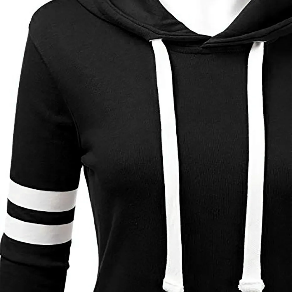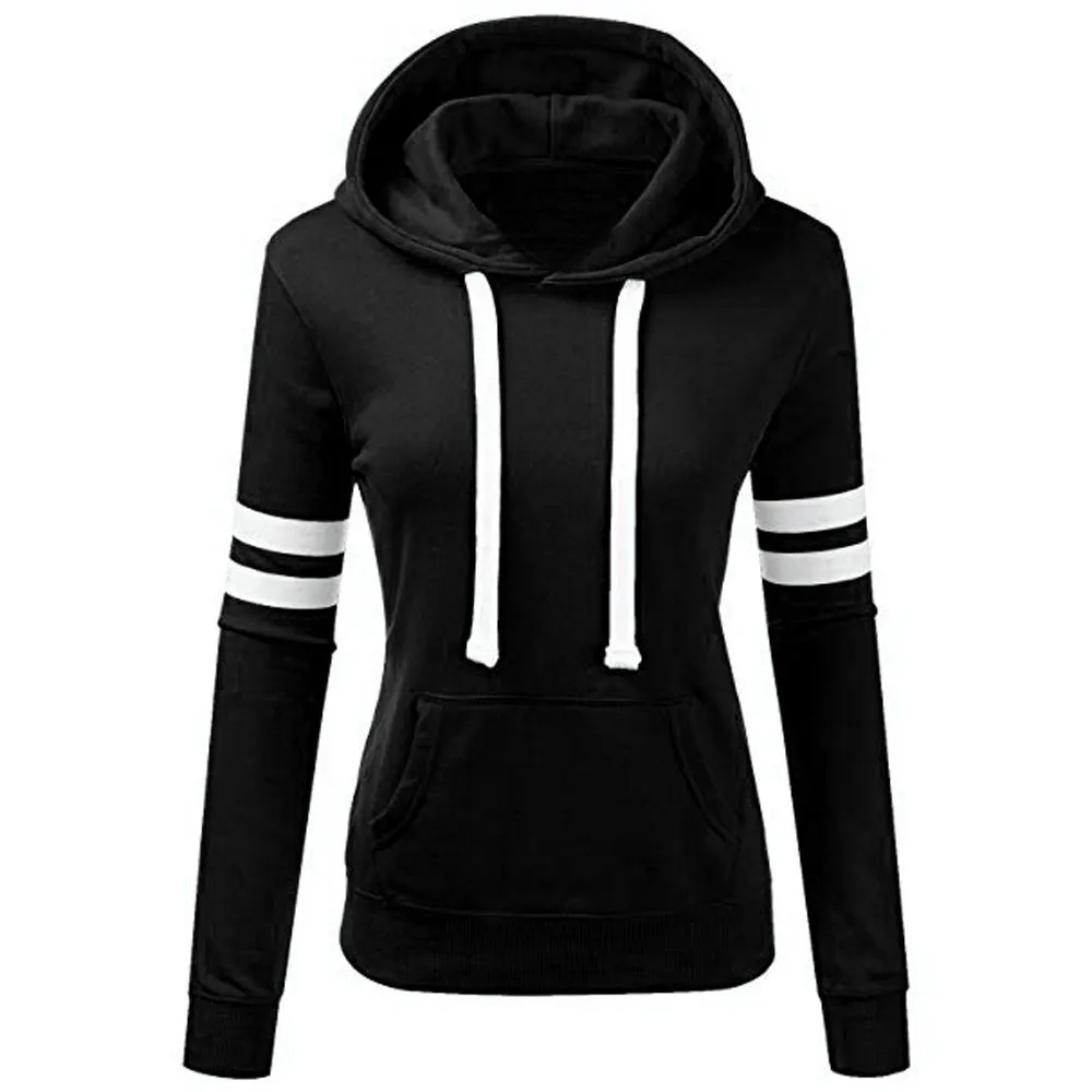 Женская Полосатая Толстовка с длинным рукавом, блузка с капюшоном и карманом, пуловер, топы, рубашка