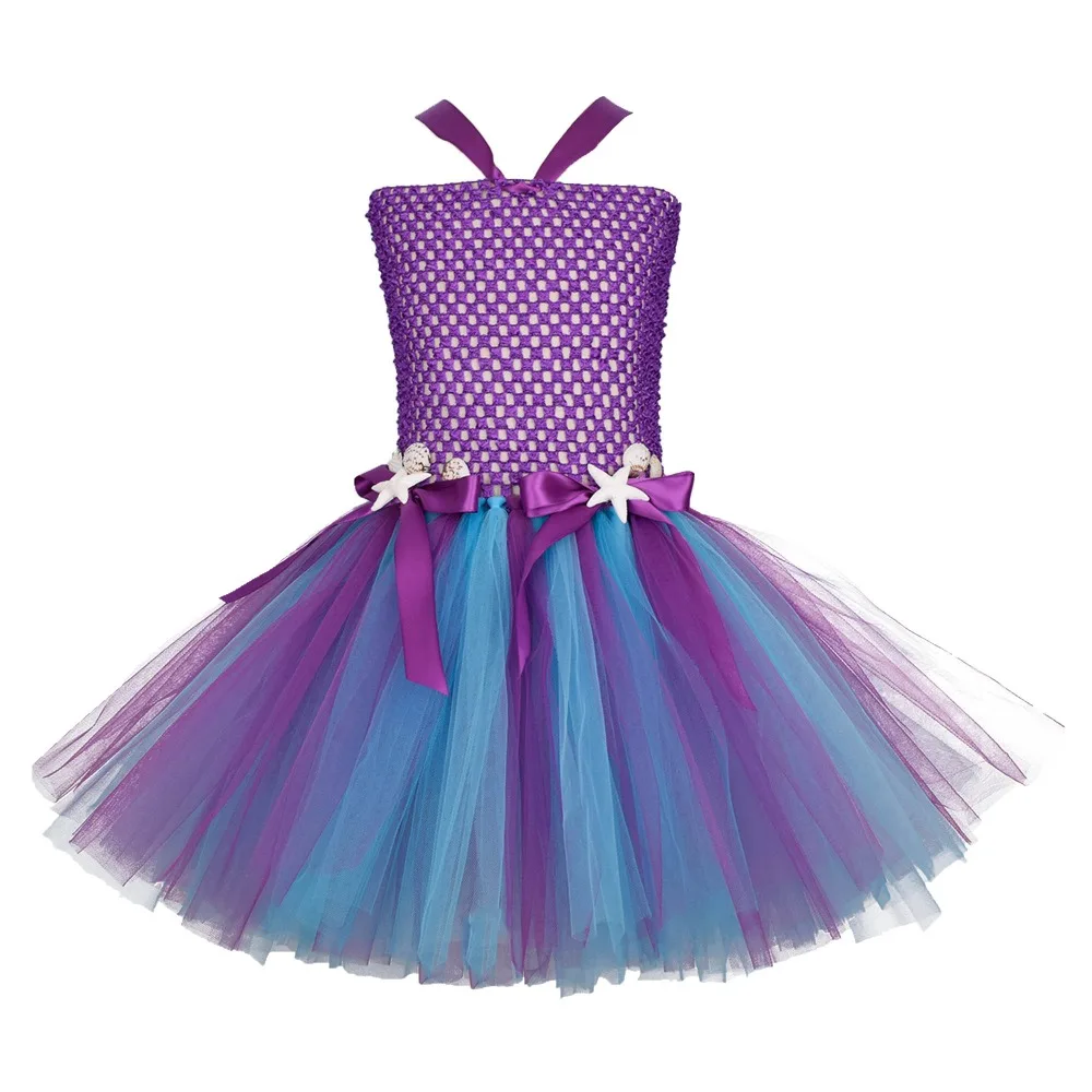Фиолетовая юбка-пачка в стиле Русалочки, платье повязка на голову с изображением морской звезды, платье принцессы для девочек, наряд-пачка для дня рождения, Детский костюм на Хэллоуин, От 0 до 12 лет