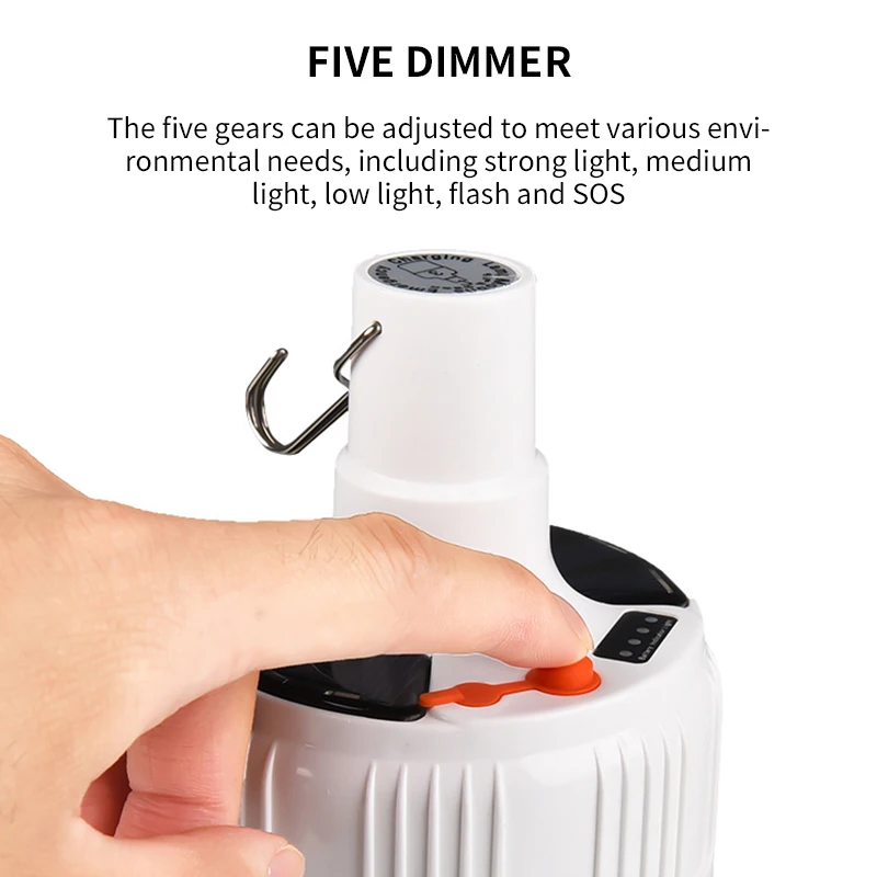 Есть 5 режимов освещения этой светодиодной лампы для вас на выбор, яркий свет/средний свет/низкий свет/Стробоскоп/SOS.