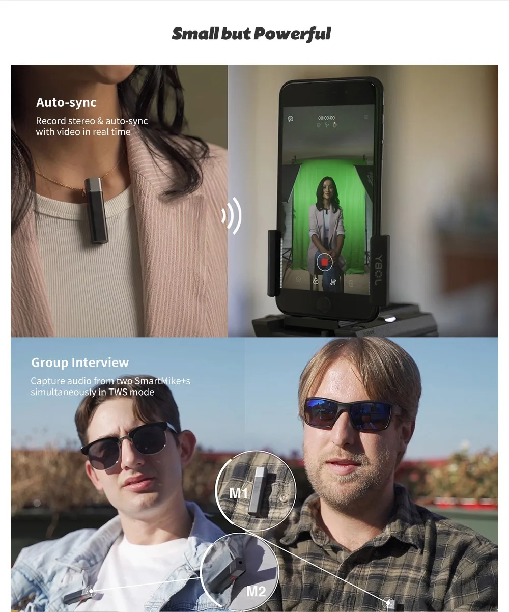 SmartMike +-первый в мире высококачественный bluetooth-микрофон TWS, Это инновационное беспроводное устройство для видеосъемки, оно работает со смартфоном видео/короткие видеосъемки сцены для обеспечения высококачественного беспроводного приобретения, двунаправленной передачи и смешивания для видеосъемки, так что видео делает съемку проще и ярче, воспоминания более полными и более душевными.