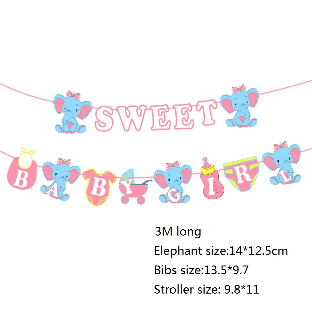 Розовый набор, Детские вечерние украшения для душа, пол, баннер, милый для новорожденных мальчиков голубой набор, воздушные шары для маленьких девочек, слон, сделай сам, детская поставка