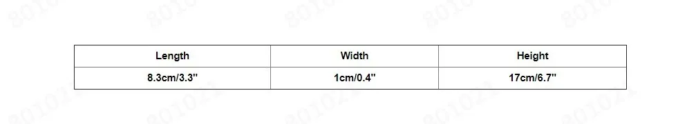 Размеры:8,3См (L)x1cm (Ш) x17cm(H)/3,3 (L)x0.4 (Ш) x6.7(H)"