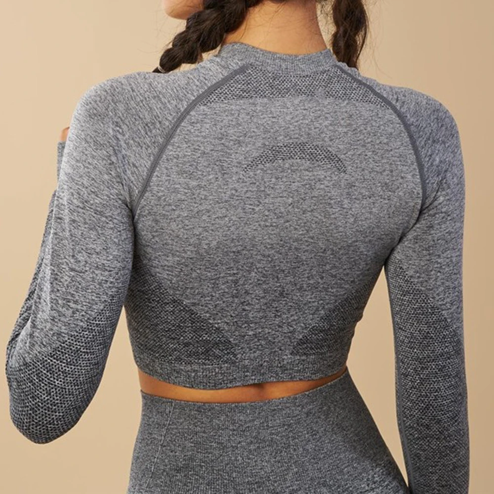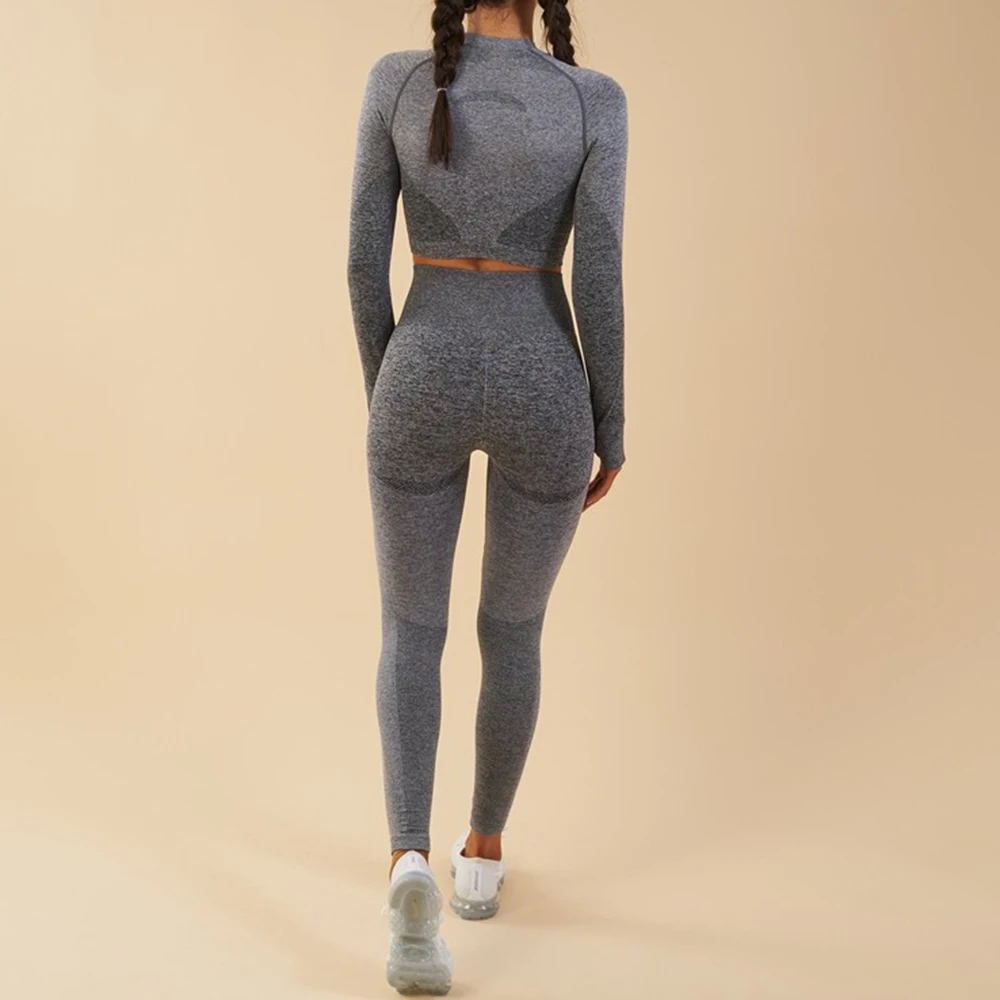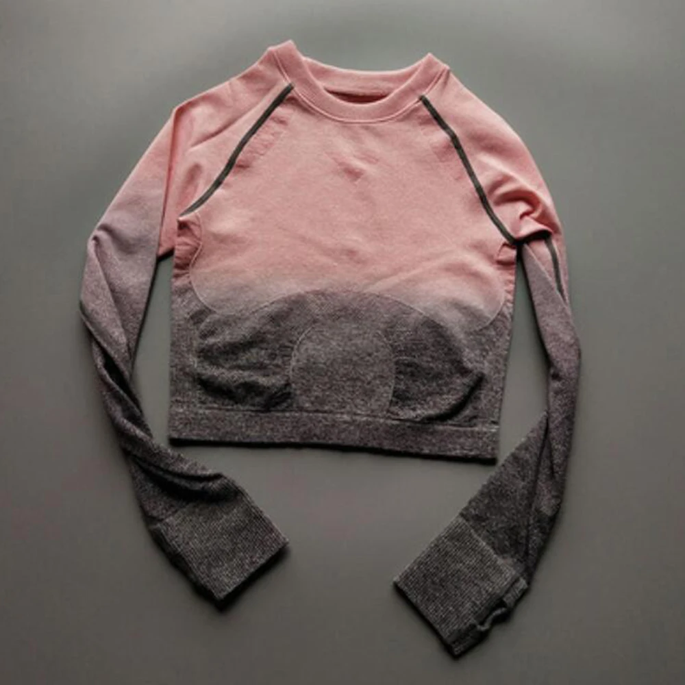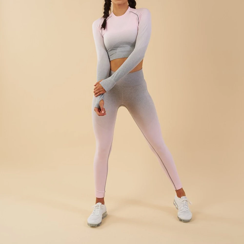Женский комплект для йоги, одежда для спортзала, Омбре, бесшовные леггинсы с градиентом + Топ с длинным рукавом, спортивный костюм для тренировок, Женский комплект для фитнеса, одежда для активного отдыха, 35