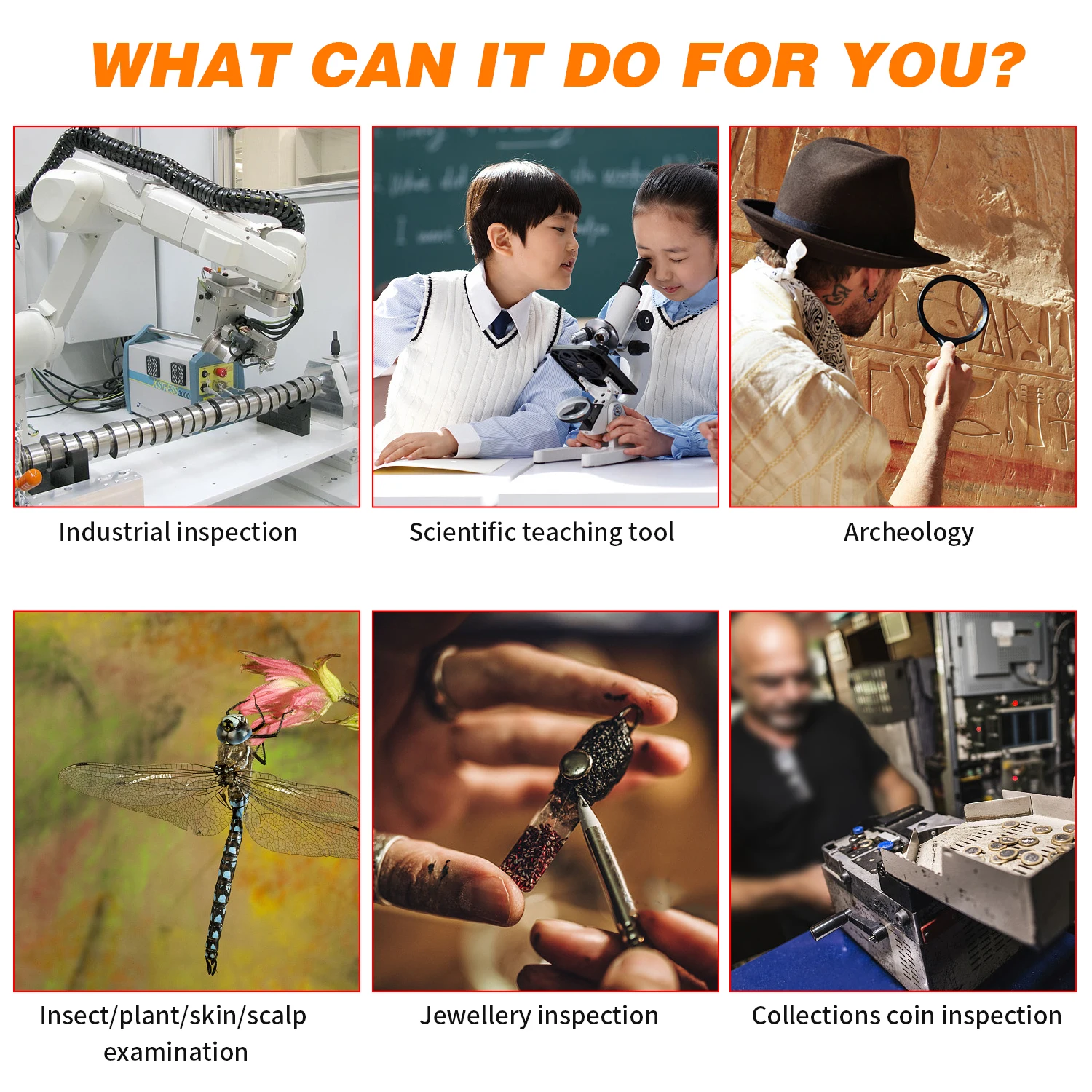 Подходит для промышленной инспекции, проверки компьютерных частей, научно-исследовательского инструмента, осмотра насекомых/растений/кожи головы, текстильной инспекции, инспекции ювелирных изделий, инспекции монет, инспекции печати и так далее.
