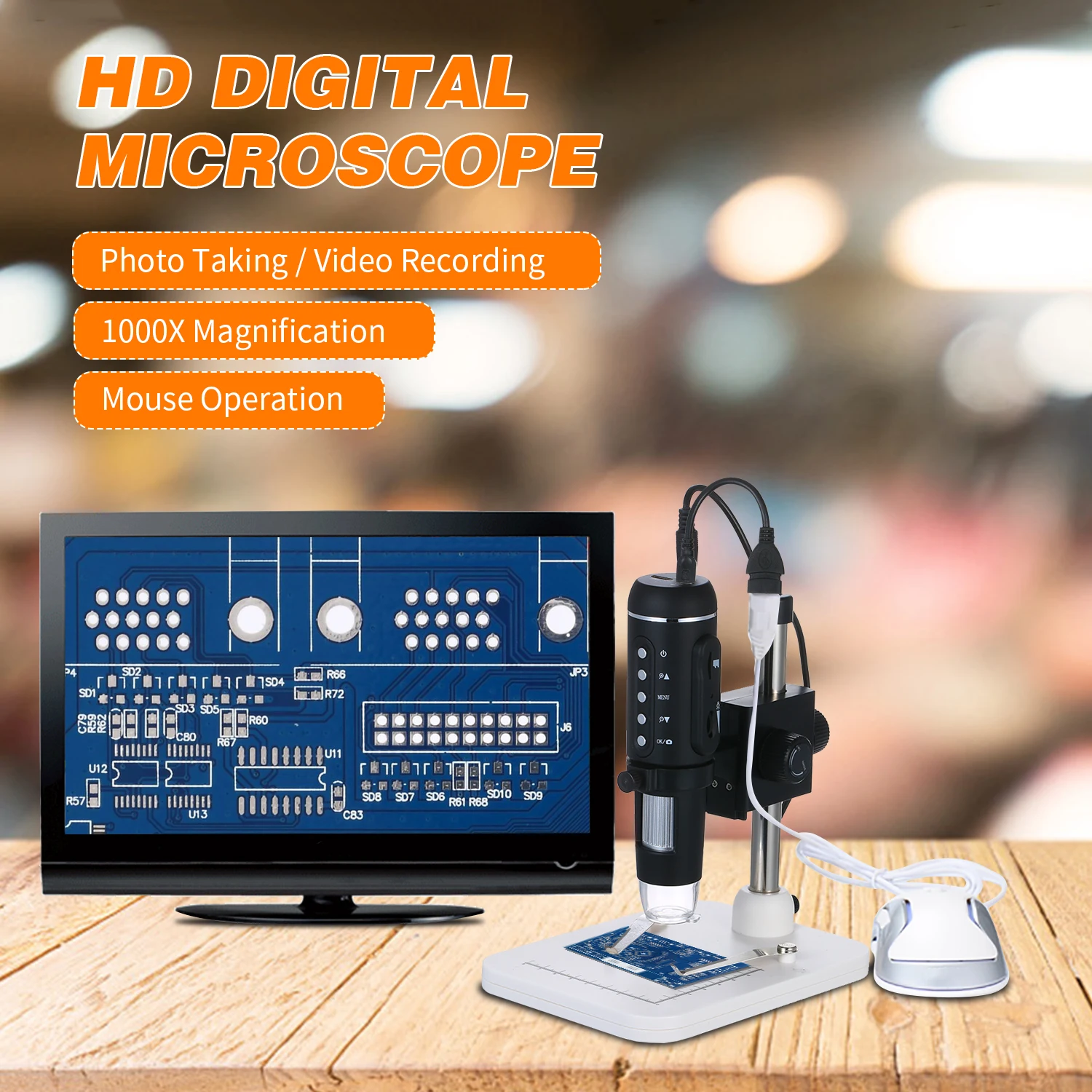 Встроенный 8 светодиодный светильник и регулируемое освещение, камера 5 Мп, регулируемый коэффициент увеличения, 0X до 1000X предлагает вам прекрасный опыт записи чистого микромира.