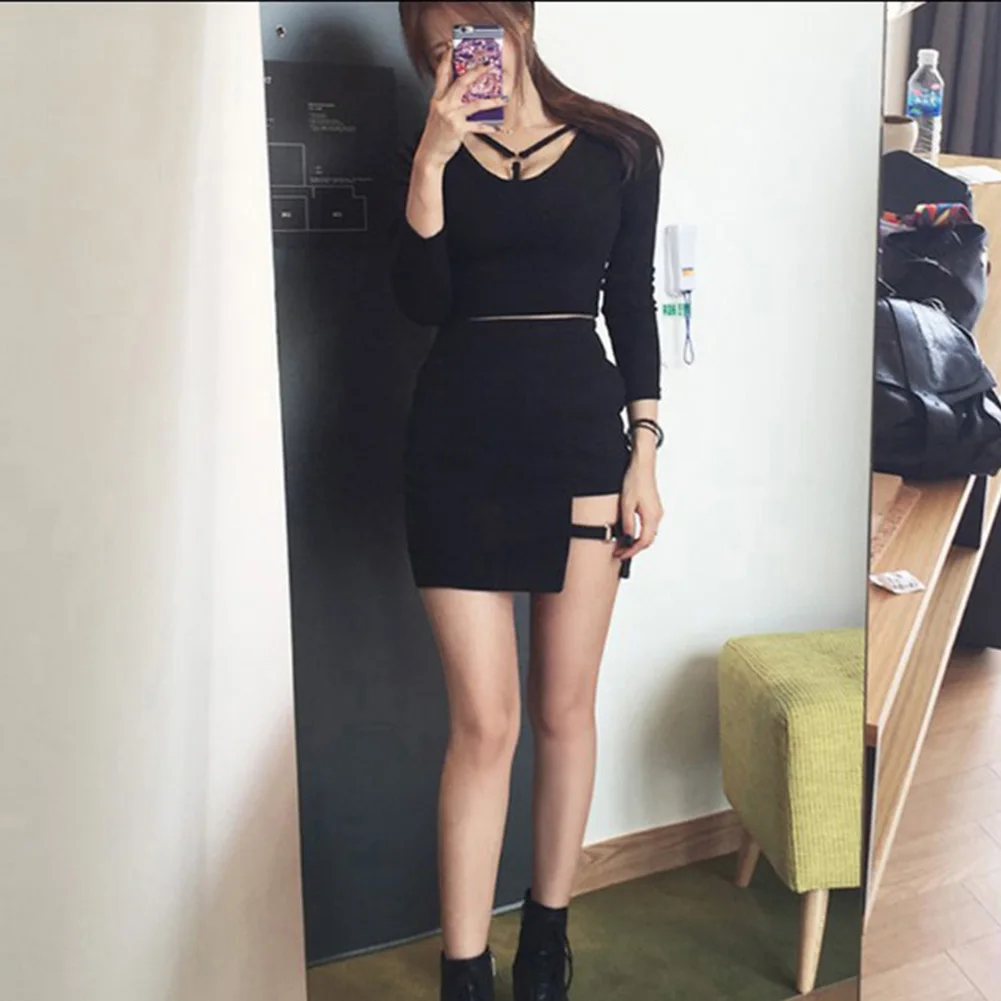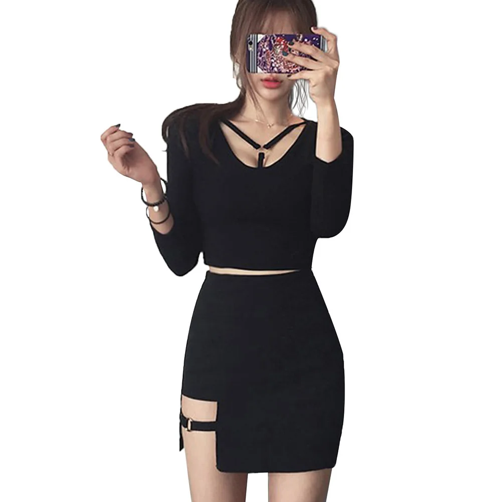 Модный женский однотонный сексуальный короткий топ с круглым вырезом и длинным рукавом