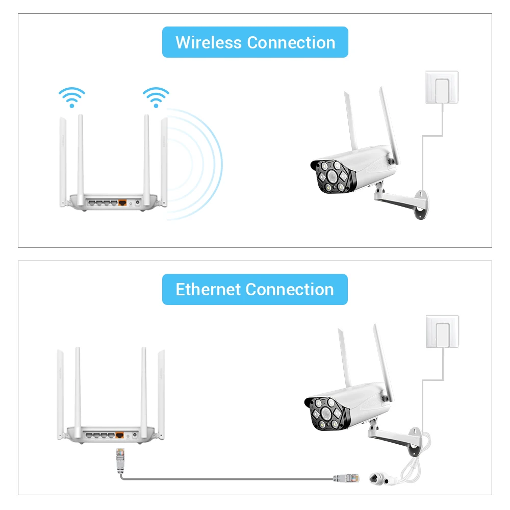 Эта камера поддерживает подключение кабеля Wi-Fi и Ethernet. Выберите метод подключения на месте установки.