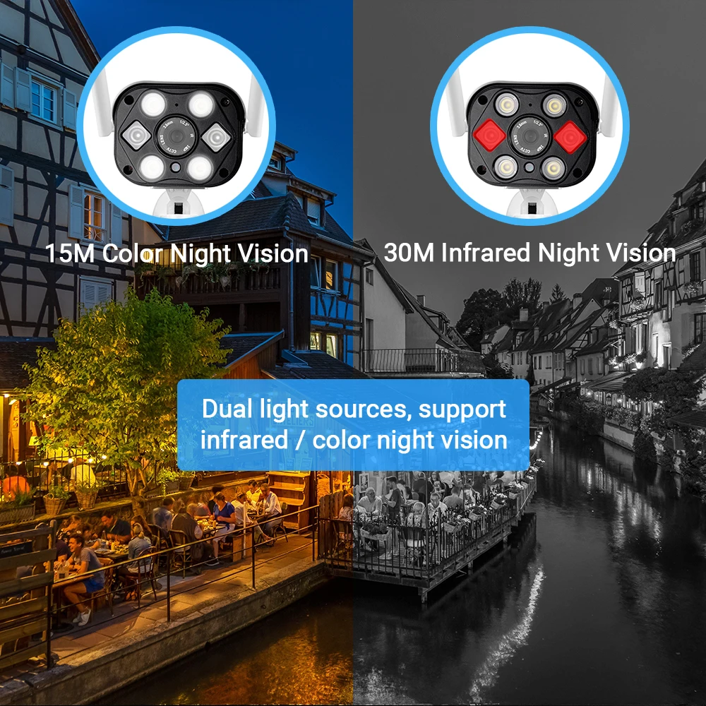 Эта камера имеет 2шт Инфракрасный светильник и 4 шт белый светильник, может поддерживать цветовое видение.