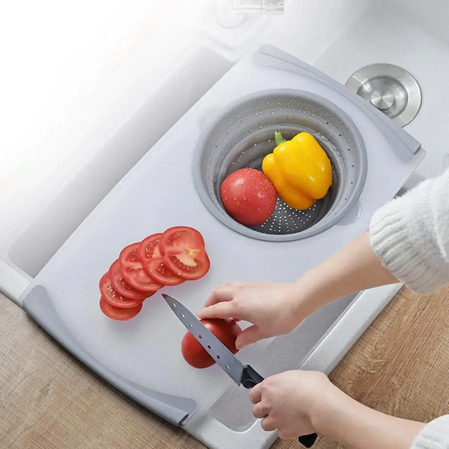 1. 3 в 1 многофункциональная Складная разделочная доска для раковины, резка/Слив/хранение, удобная и практичная.