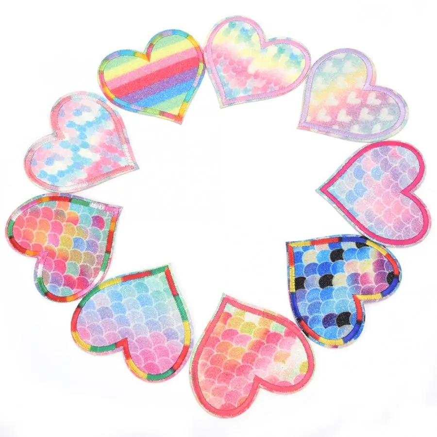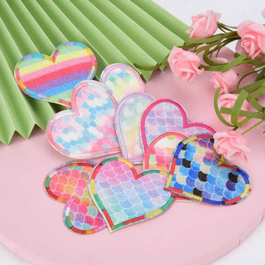 9 шт. вышитый значок с блестками в виде сердца, железные наклейки для шитья, одежда, наклейки с аппликацией в виде сердца, нашивка с аппликацией, детская одежда