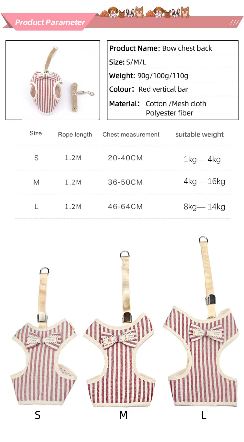 Mosodo, модный жилет в полоску, ткань, нагрудный ремень, маленькая собака, кошка, поводок для щенков, поводок предметы S M L