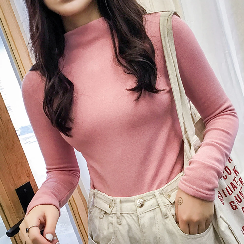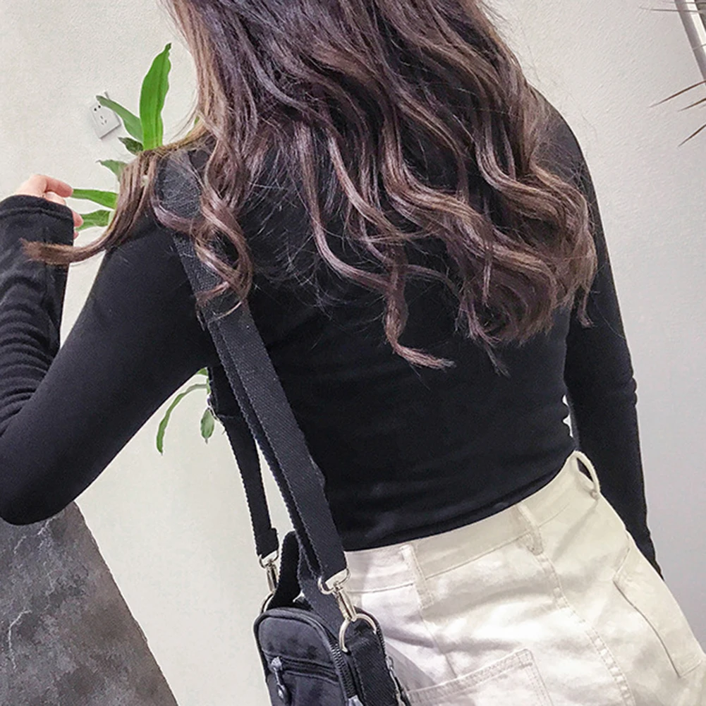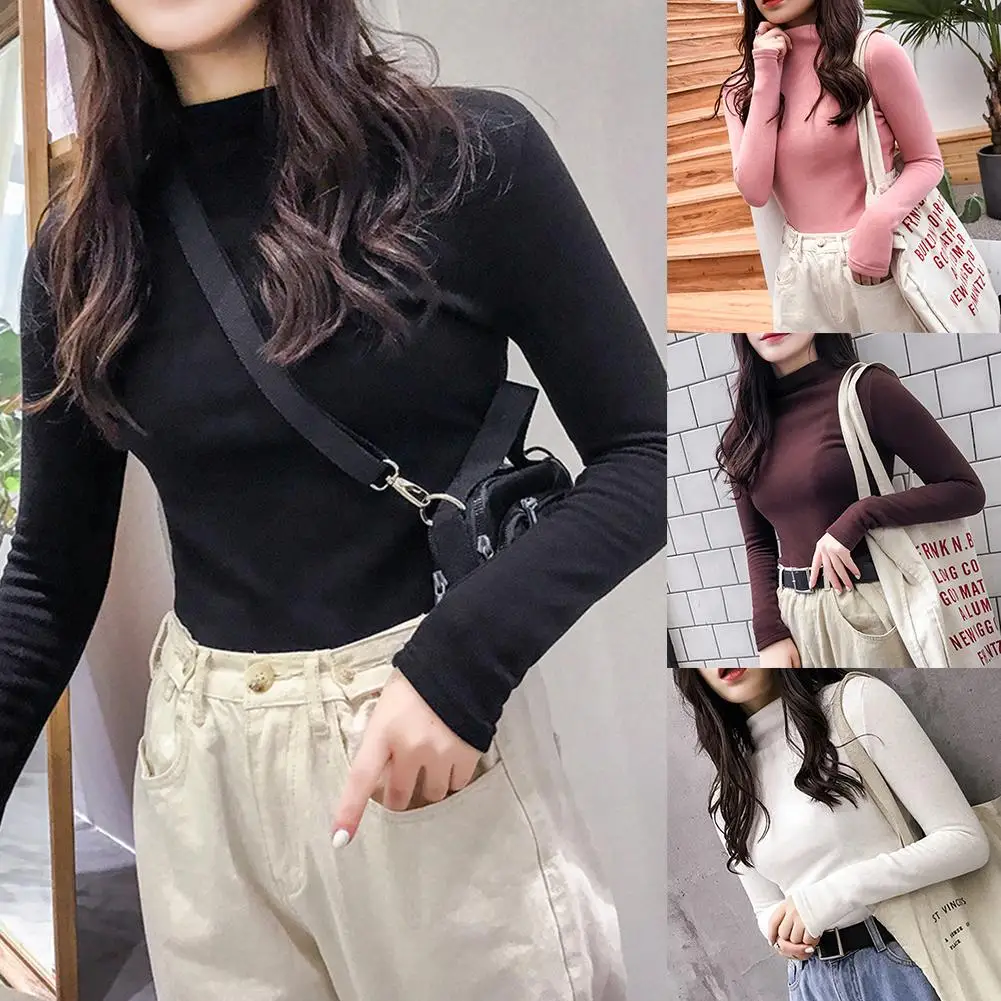 Женская Осенняя однотонная Водолазка с длинным рукавом S-lim, Базовая Блузка
