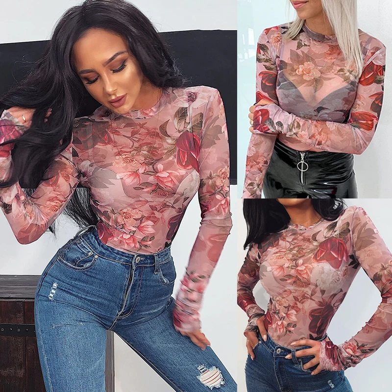 Женская сетчатая Прозрачная Футболка с оборками, топы с длинными рукавами, приталенная блузка, футболка, Великобритания