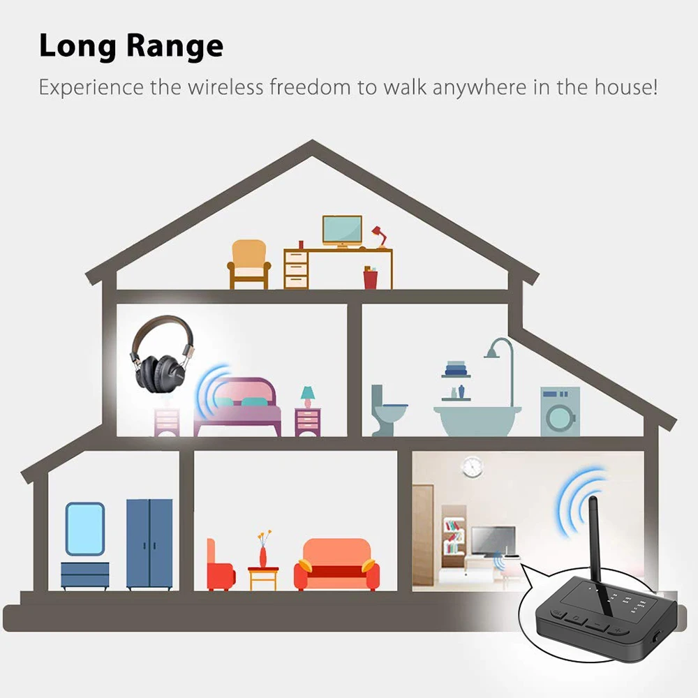 Свободное расстояние передачи сигнала до 80 м (262ft) и конструкция двойной антенны, широкий диапазон передачи, супер стабильный и мощный, подходит для мобильных телефонов, ТВ, ТВ-приставок, MP3,MP4, динамики, проводные гарнитуры, bluetooth-гарнитуры, ноутбуки, усилители, Автомобильные колонки и bluetooth-динамики или наушники, которые полагаются на Профили Bluetooth A2DP для плавной работы.