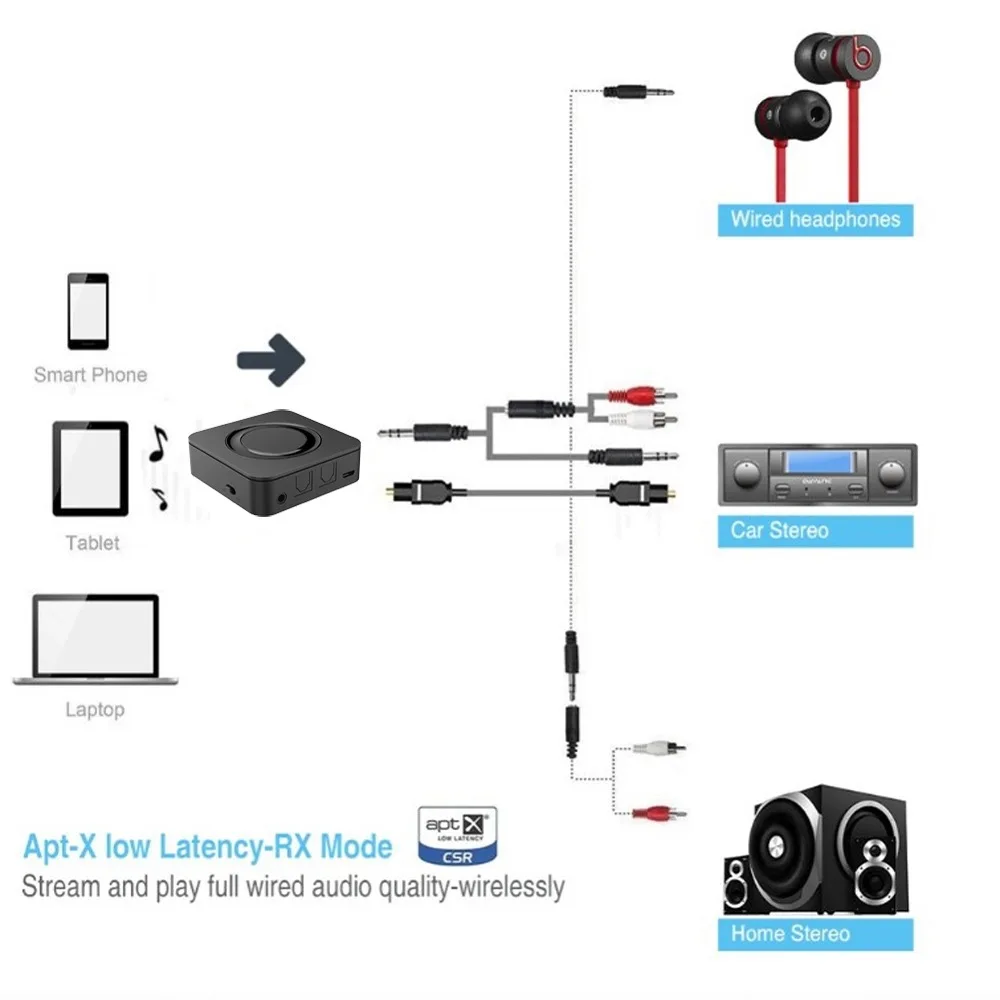 -Оптический зум + RCA + 3,5 мм: помимо 3,5 мм Aux / RCA Подключение, CRDC совместимы с bluetooth-адаптер также поддерживает оптический кабель (кабель TOSLINK /SPDIF) вход/выход. Благодаря предоставленному оптическому кабелю вы можете наслаждаться высококачественным цифровым звуком через несколько аудиовыходов, таких как проводные стерео, колонки или наушники.