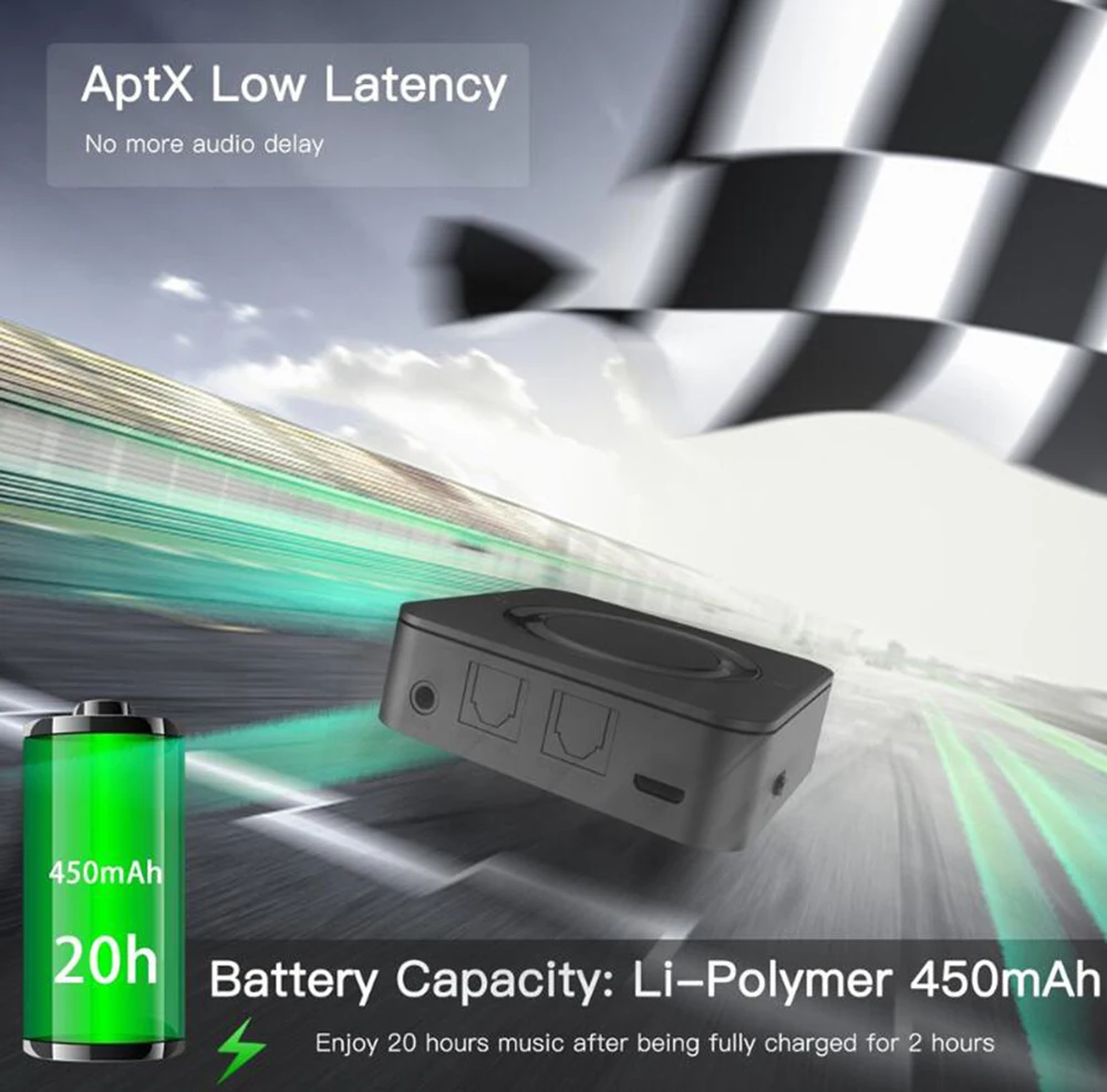 -Питание от чипсета Премиум CSR8670, bluetooth-адаптер CRDC поддерживает новейший Bluetooth V5.0. С aptX LL, наш bluetooth-передатчик/приемник может передавать стабильный звук и доставлять звук CD-качества по беспроводной сети через bluetooth-соединения.