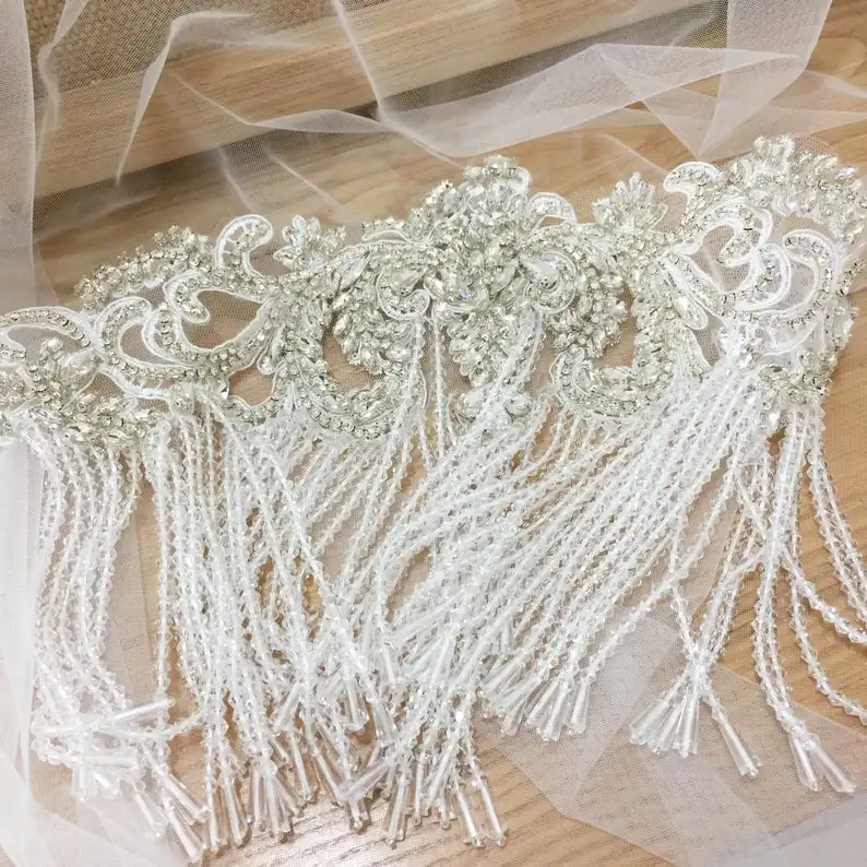 Ручная вышивка бисером от кутюр кристальная аппликация с кисточкой для свадебной накидки, покрывало, стразы на плече, свадебные украшения