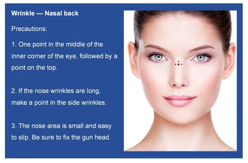 Примечание: 1. При впрыскивании препарата, не может держать марлю вручную, не может играть вертикально, нужно прижимать кожу, около 90 градусов, затем одно время давление, несколько волос, безопасно и быстро, Каждый раз, когда можно ввести 0,01 мл, произвольная корректировка. Препарат быстро попадает в подкожную клетчатку и завершает инъекцию без боли, без иглы, без боли, маленькой ран. 2. Если кожа не может быть около 90 градусов, то впрыснуть вертикально и низко, не может встряхнуть. 3. Необходимо Расстояние 1 см между кожи в тех случаях, когда наркотики, потому что к заломам фактор будет автоматически распространения 1,5 см, таким образом, не беспокойтесь о том, что ваш частичное освещение. Рекомендуется использовать гиалуроновую ручку с помощью препарата, лучше всего работать под руководством косметолога или профессионального косметолога для работы.