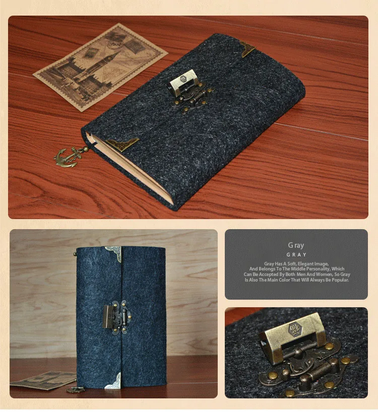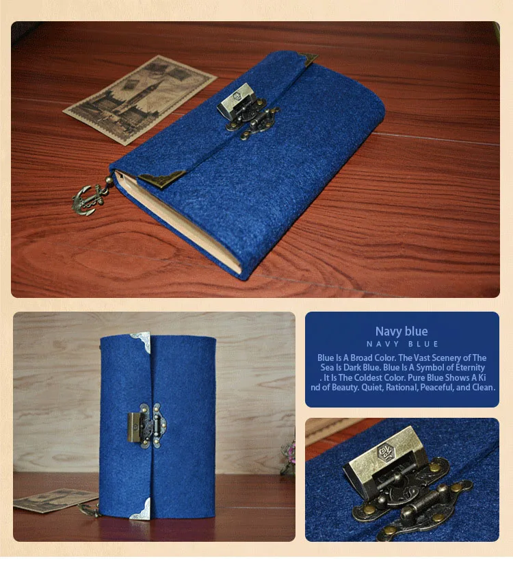Наименование товара: новая фетровая книга с замком Материал: войлок Метод переплета: идеальный переплет Размер: 195 мм X 130 мм Размер внутренней страницы: 19X12 см Внутренняя страница: 100 листов 100 г крафт-бумаги