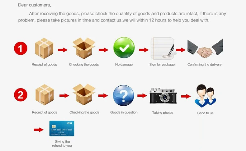 1) Мы гарантируем отправку в течение 72 часов после подтверждения оплаты (за исключением праздничных дней). 2) Время доставки прибл. От 14 до 20 рабочих дней (за исключением субботы и воскресенья, праздничные дни) в большинство стран США/Великобритании/Австралии 3) Пожалуйста, свяжитесь с нами, если вы не получили посылку в течение 30 дней 4) Пожалуйста, убедитесь в правильности адреса доставки. Мы не несем ответственности за любые неправильные или недоставляемые адреса.