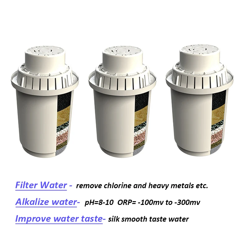 (Только 3 шт. сменных картриджей для водяного фильтра, без кувшина) Функция: 1. Создает шелковистую, гладкую и великолепную воду для дегустации, которая идеально подходит для прямого питья и приготовления пищи 2. Помогает фильтровать хлор и другие загрязнители и надолго поглощает металлы, такие как свинец и медь 3. Повышает уровень кислотности воды до уровня pH 8 или выше 4. Естественным образом залейте в воду богатые минералы (Ca, Mg, Na, K и более) 5. Уменьшает масштаб извести 6. Поддерживает системный рН-баланс в теле 7. Повышает активность водорода 8. Обеспечивает низкий уровень негативов: от-100 мВ до-300 мВ, что уменьшает окисление вашего тела и делает вас моложе 9. Уменьшает размер молекулы воды, что создает очень впитываемую воду 10. Повышает Щелочность, чтобы сделать вашу питьевую воду более первой