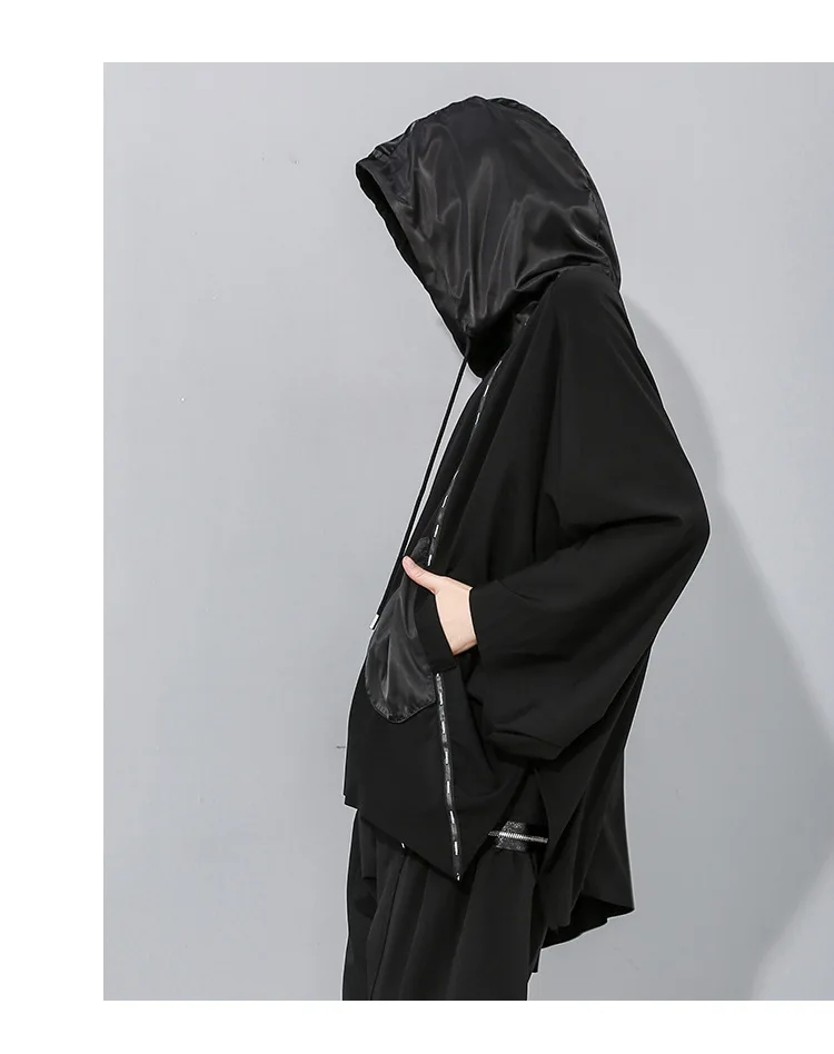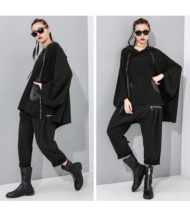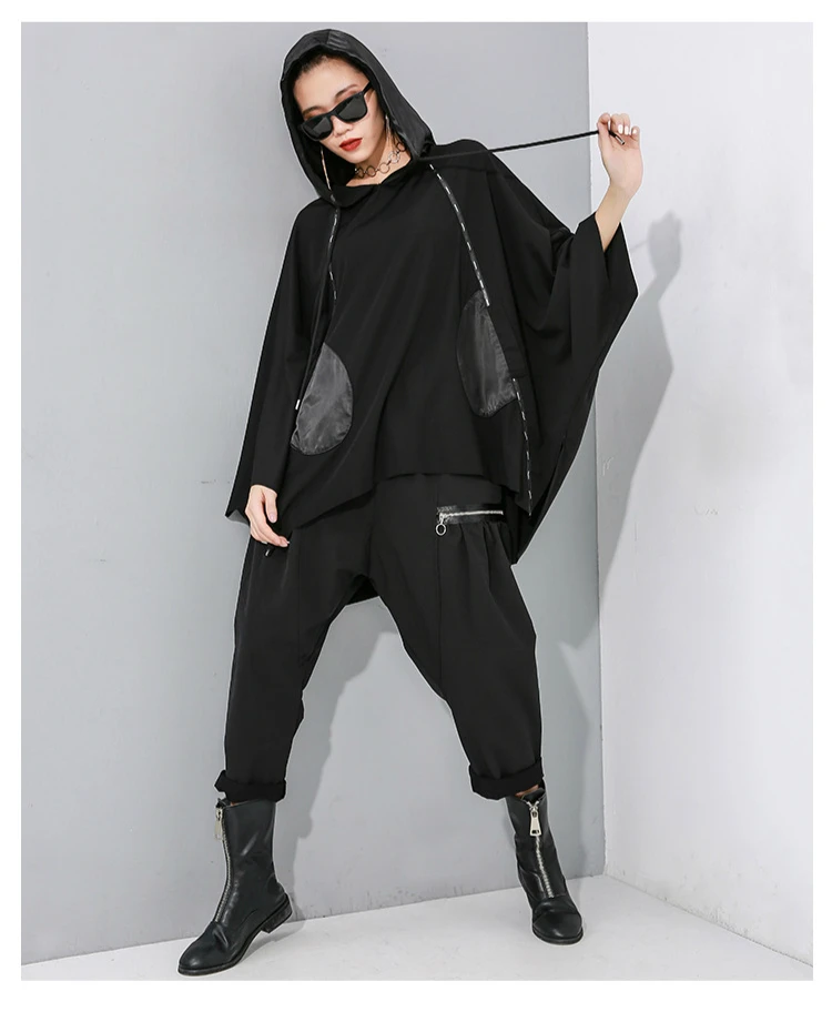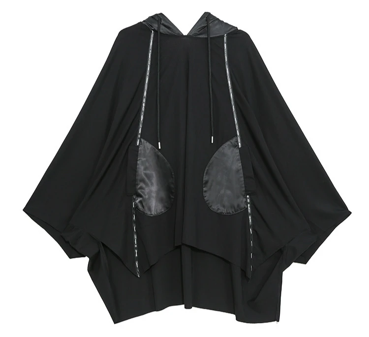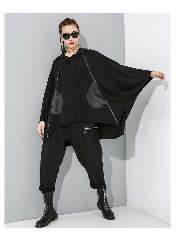 2020 Женская свободная футболка большого размера d, Лоскутная Асимметричная футболка с капюшоном, женская черная футболка с рукавом «летучая мышь» размера плюс, одежда со шнуровкой