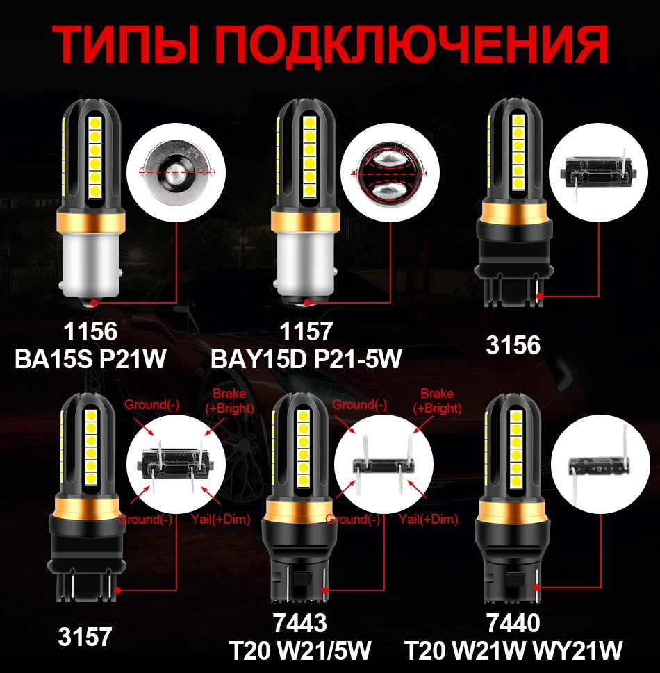 Описание: 4 бортами Сияющие Светодиодный Тип чипа: 24SMD-3030 Светильник: белый или желтый Тип розетки: H7 H4 9005 9006 H8 H11 H9 H10 9012 1156 1157 BAU15S 7440 7443 3156 3157 H16 P13W PSX26W PY24W PSX24W Напряжение: 12 V-24 v Срок службы:> 50000 часов Гарантия: 1 год Особенности: Новинка 100% года; высокое качество Низкая температура, низкое энергопотребление и срок службы до 50000 часов. Новый светодиодный технология сокращает энергопотребление с 40% до 80%. Пожалуйста, обратите внимание, что эта лампа не предназначена для головной светильник или светильник дальнего света. Посылка включает в себя: 2 шт.
