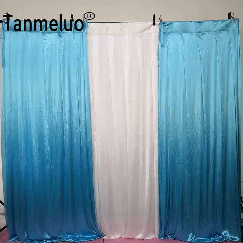 Item: wedding backdrop curtain Height: Around 2m Width: Around 2m (Total would be around 5-6 cm error distance) Q:How to hang the backdrop??? A:It has both rod pockets on the top and ties at back. Material: Ice silk fabric (transparent) Color: white and lake blue (can be custom, see our color chart below) Installation: It has both ties and rod pocket on the top back of the curtain. Size also can be custom, if you want other size please contact us before you buy.Thanks