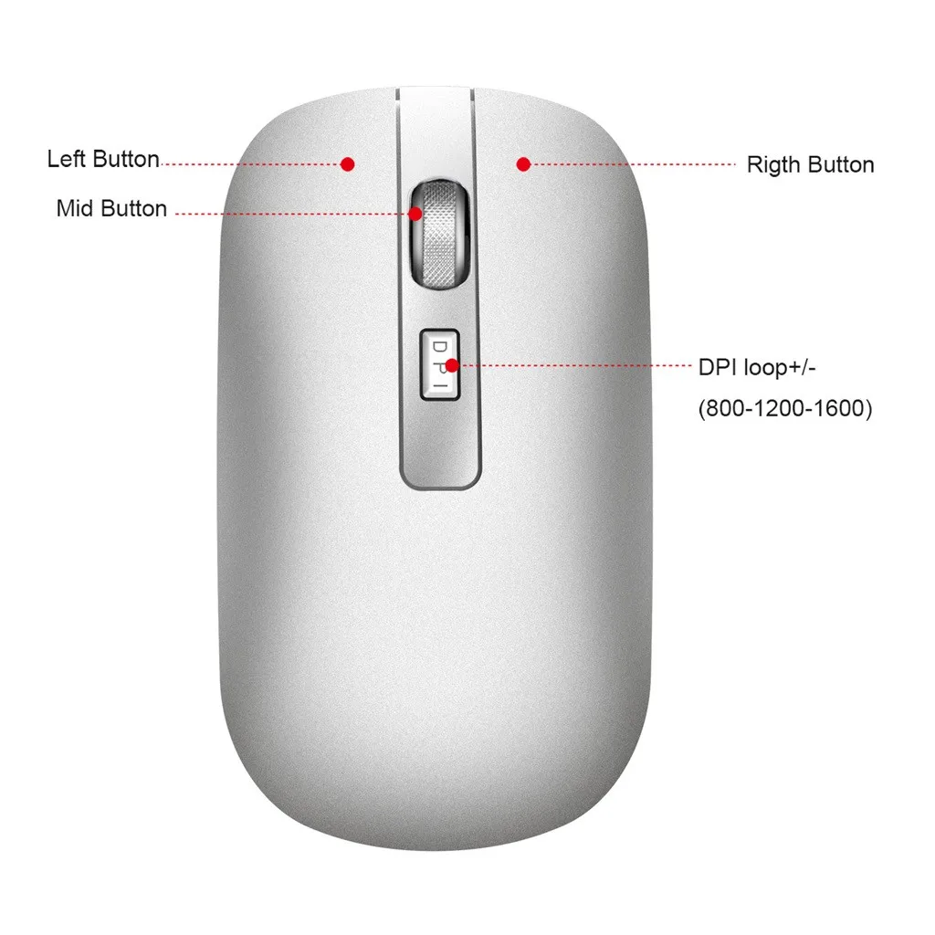 Перезаряжаемые 2,4 г Беспроводная металлическая Бесшумная оптическая мышь для ноутбука