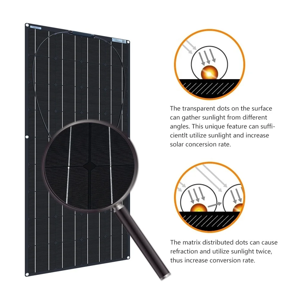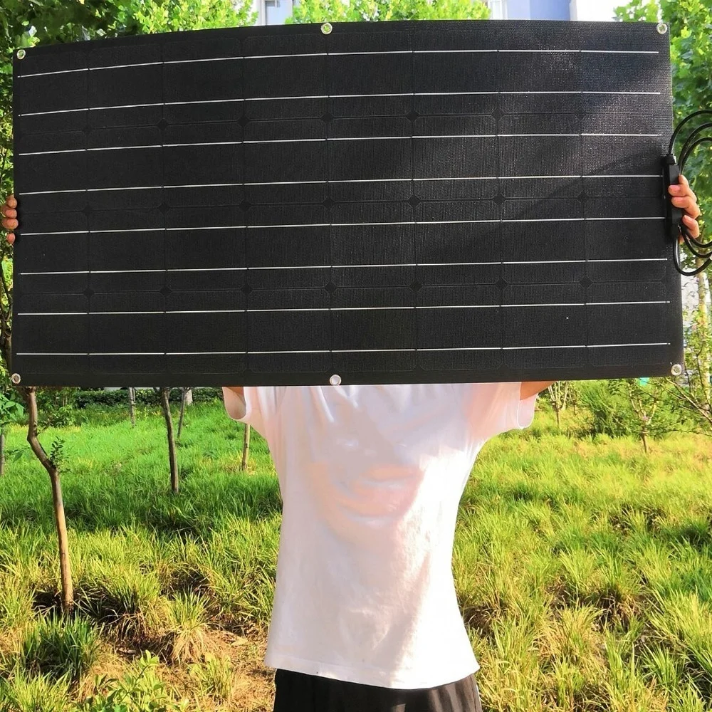 200 Вт черный задний план 12В/24В Гибкая Солнечная Панель монокристаллический кремний высокий коэффициент конверсии для кемпинга и Караван И RV и лодки