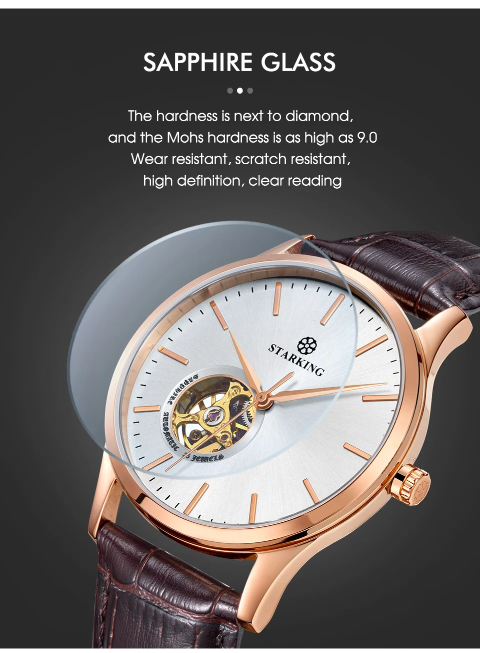 STARKING, мужские часы, механические часы, для мужчин, автоматические, самовзводные, Movt, скелет, коричневый, натуральная кожа, мужские наручные часы, сапфир, Relogio