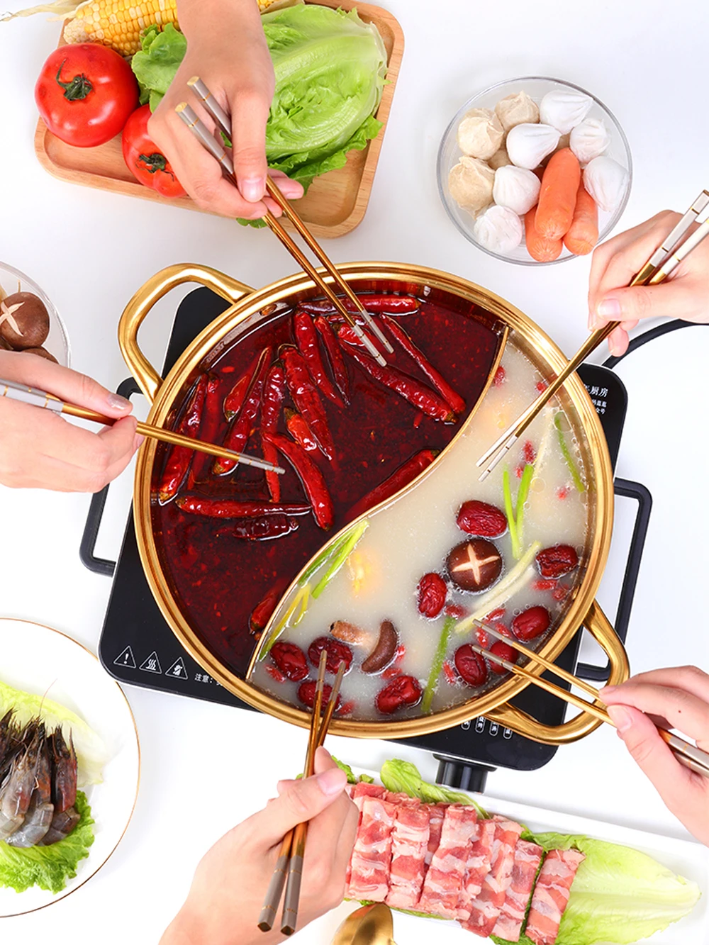 304 нержавеющая сталь Два вкуса горячий горшок бытовой тяжелый коммерческий горячий горшок shabu открытый огонь индукционная плита специальный горшок