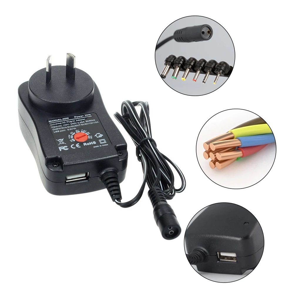 Название продукта:30 Вт Универсальный Регулируемый AC/DC адаптер переключения Питание с 6 адаптер советы для 3 до 12 бытовой электроники